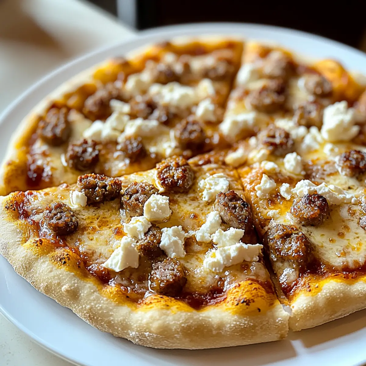After removing the pizza from the oven, allow it to cool for a minute before drizzling honey over the top. This sweet touch will contrast beautifully with the savory sausage and tangy feta, creating a flavor explosion. Slice your pizza into wedges and serve immediately, ensuring each bite offers that perfect blend of savory and sweet.