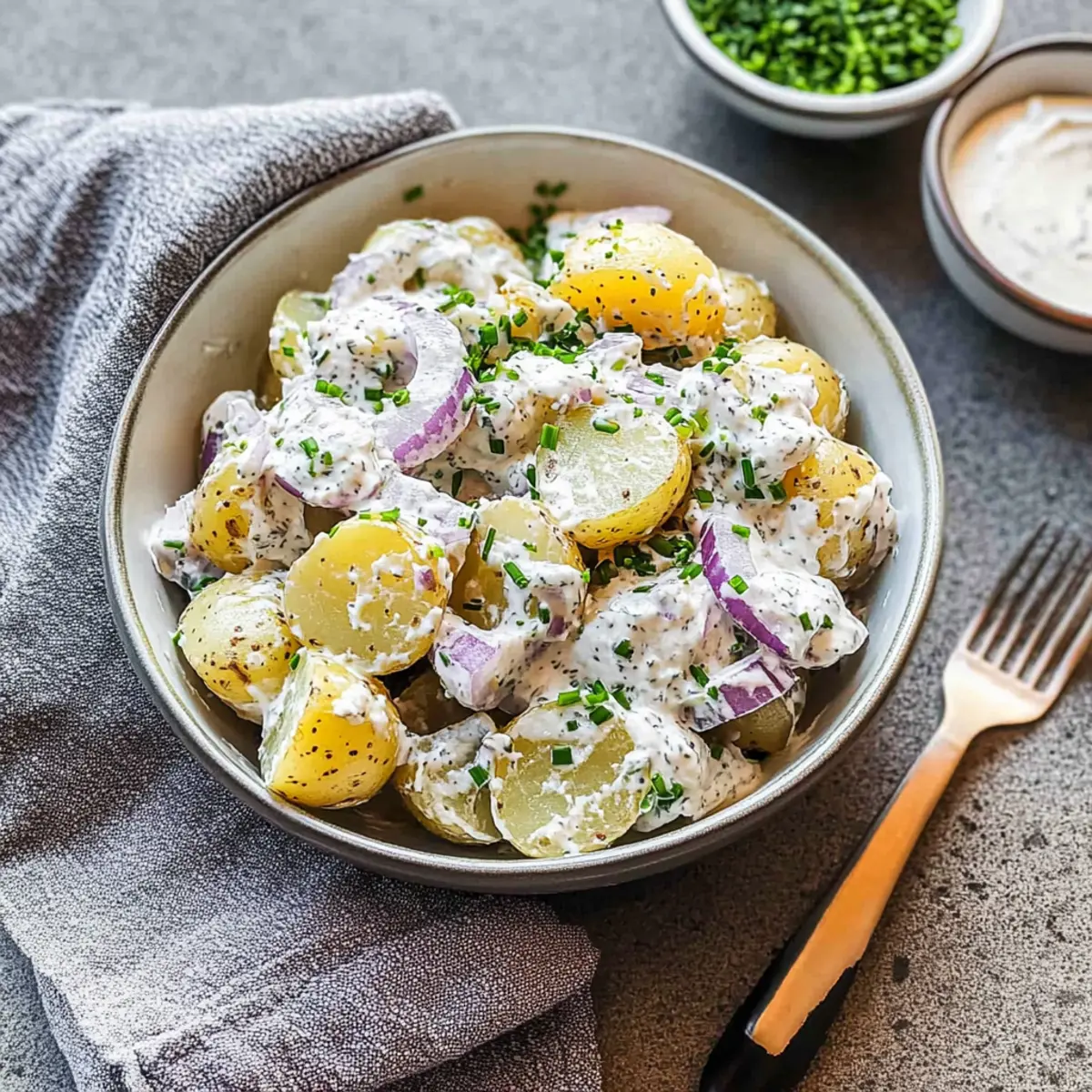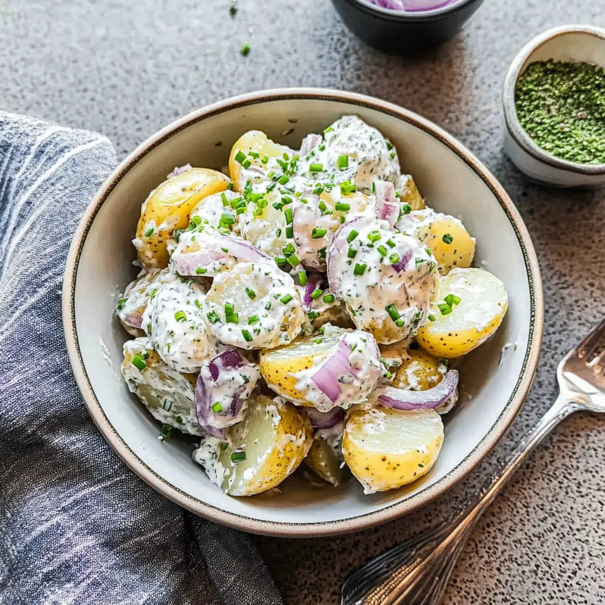Fresh Ingredients Matter: Use fresh chives and onions for that vibrant crunch and taste; they make a significant difference in elevating your potato salad.
